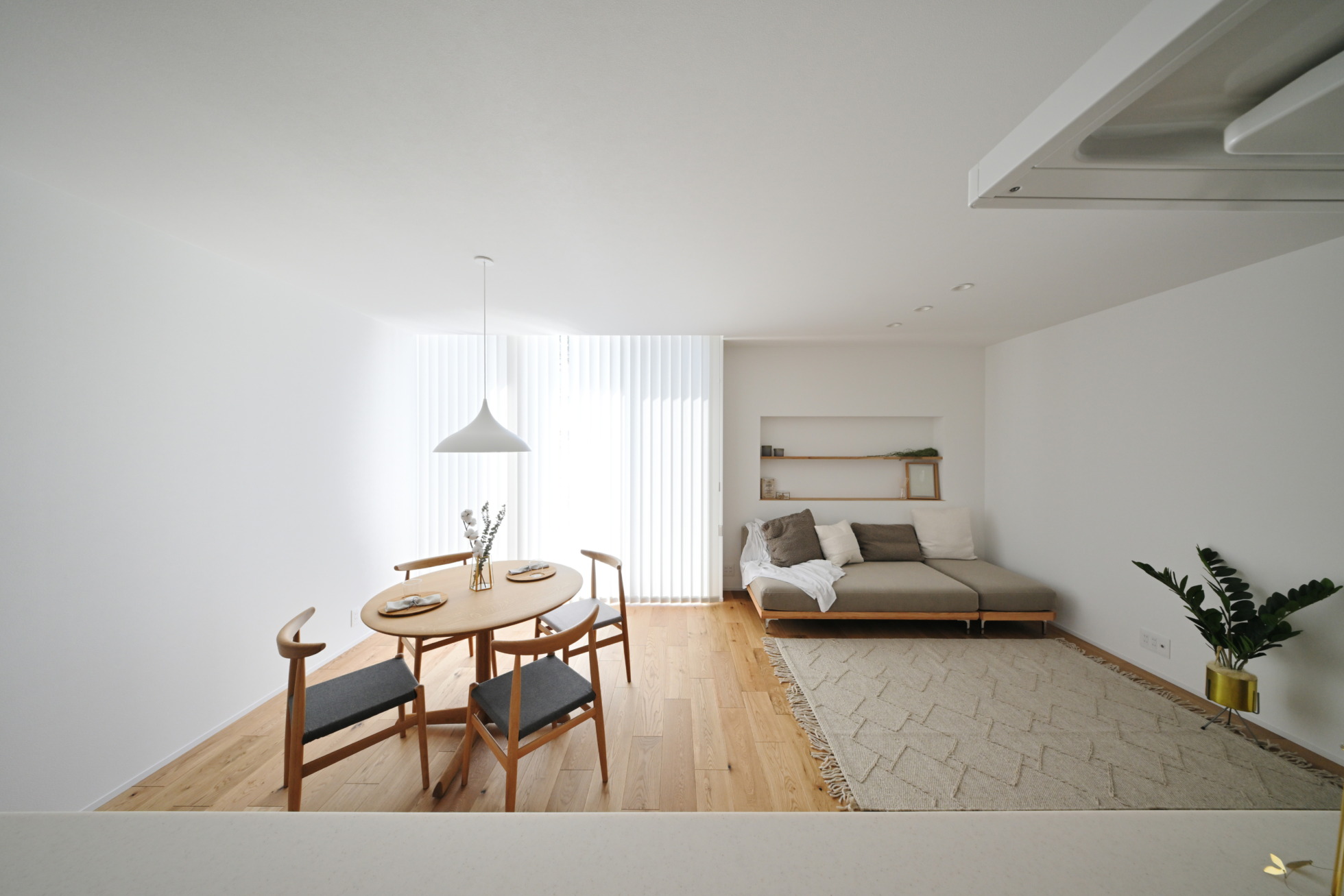 サイズ・レイアウトが決まれば今度は色味や素材を内装の雰囲気と合わせて検討してまいります。キッチンや床・クロス・タイルなどとあわせて家具の色味もコーディネートすると一体感のある空間に仕上がります。