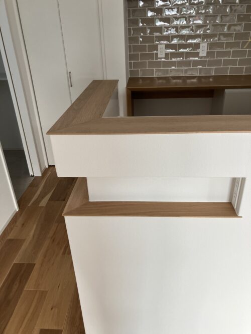 カウンターの後ろに溝を彫りこみそこに照明を仕込んであります