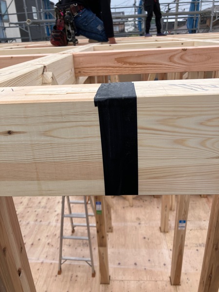 その他細かいところですが梁のつなぎ目もしっかりテープ処理します