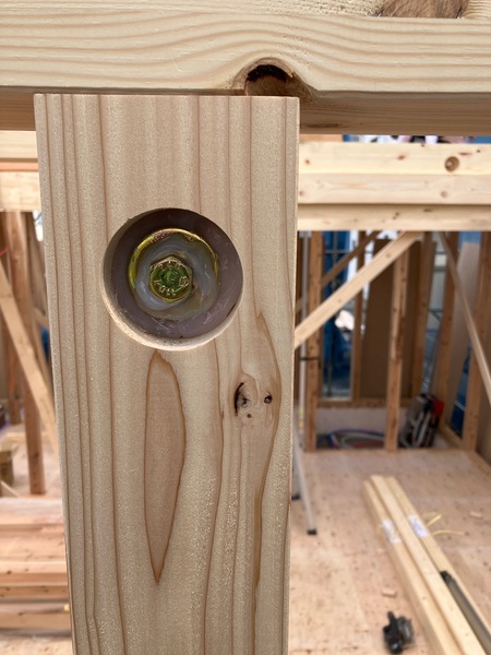 今回のモデルハウスは梁や火打ちが現しの仕上げになるのでそこもしっかり処理します