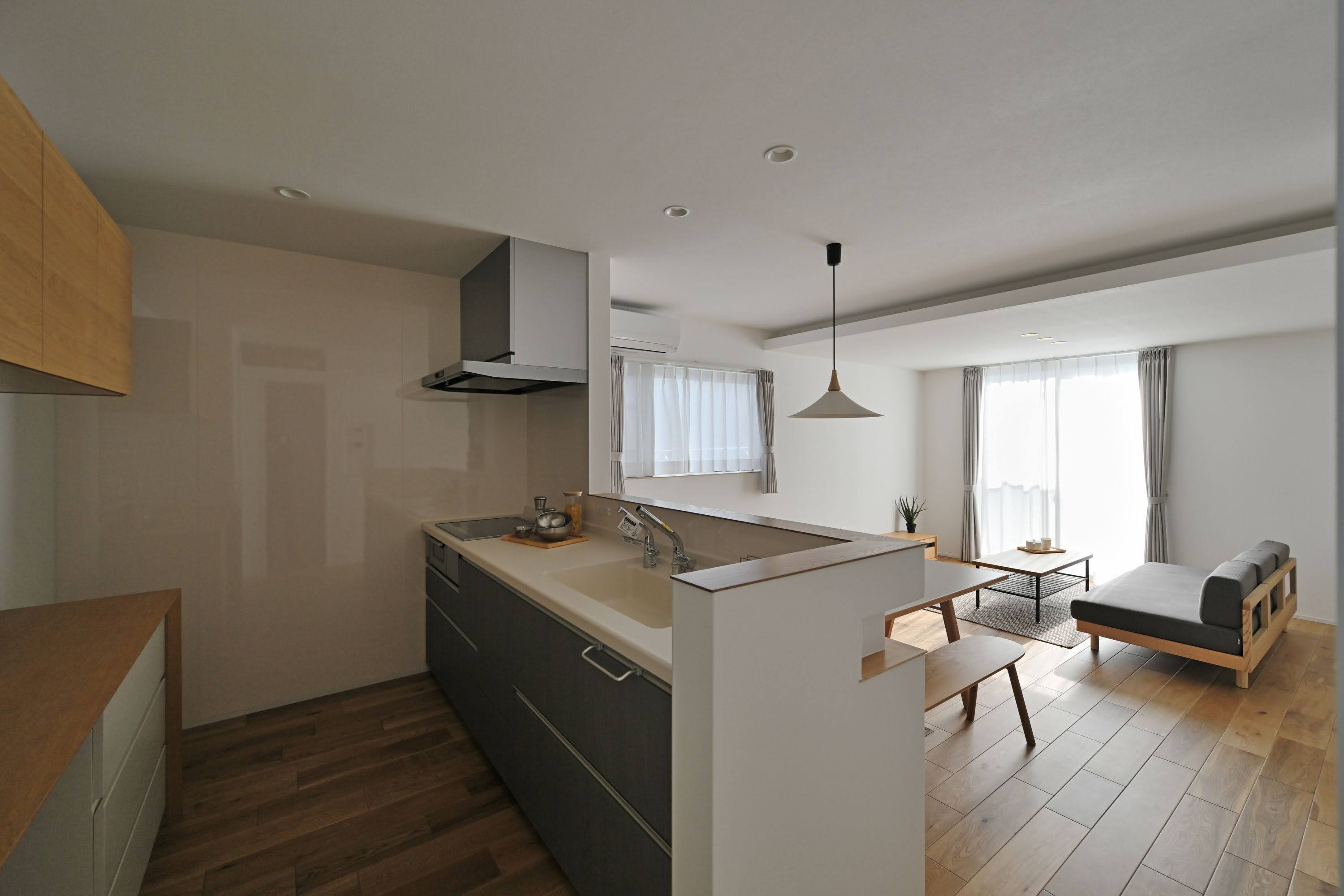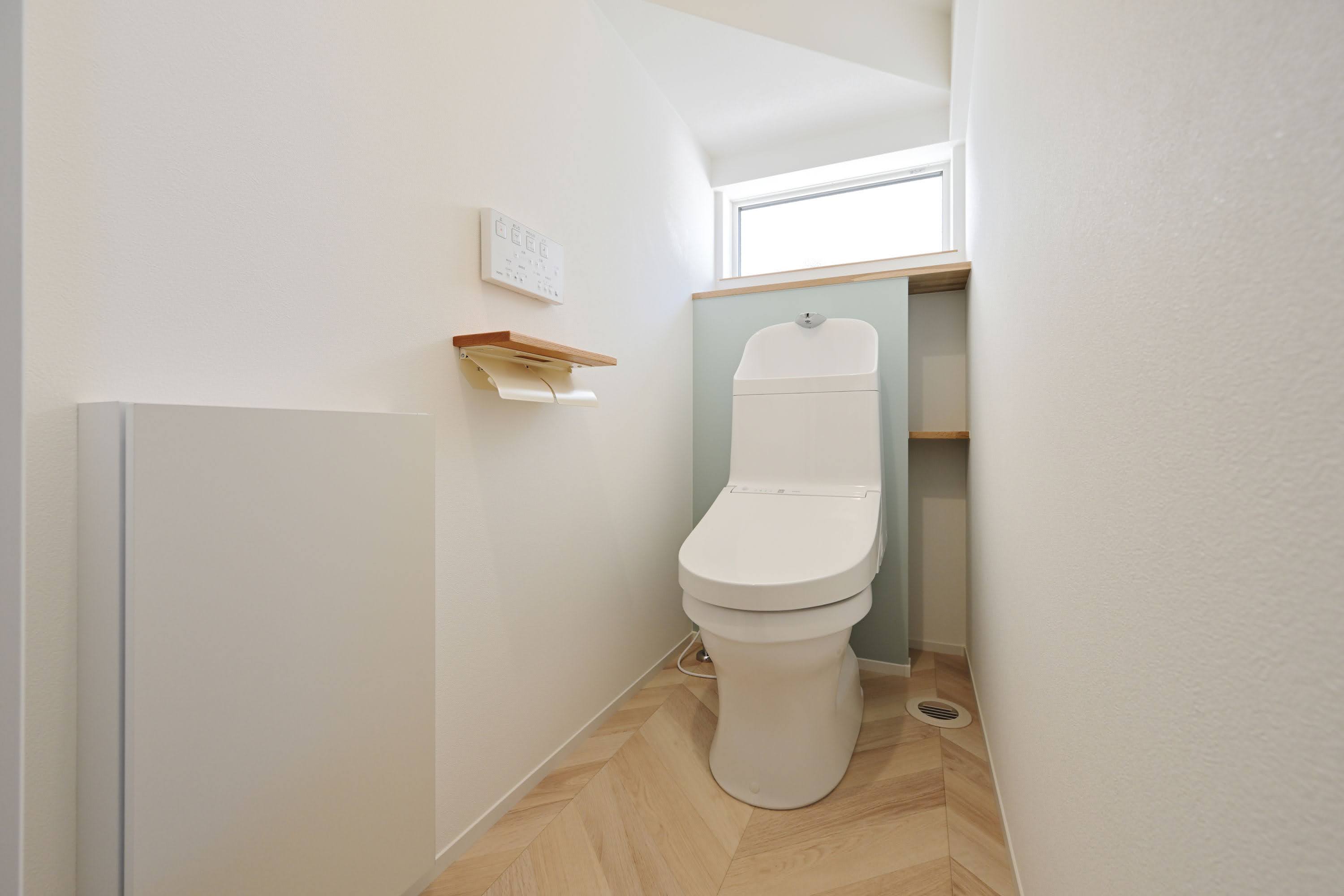 キッチン、トイレ、洗面と水回りを中心にこだわりのお色味やタイルと収納を設けました。
